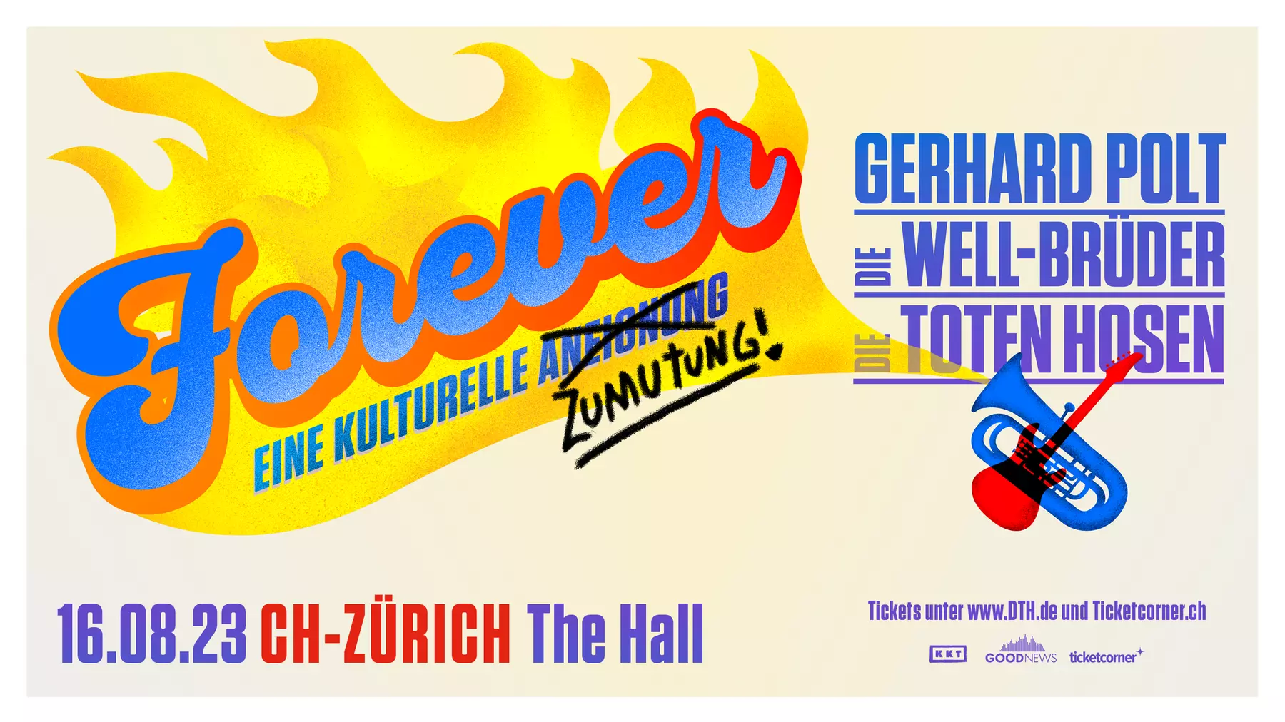 Polt, die Well-Brüder und die Toten Hosen: Das ist eine Seelenverwandtschaft, die nur auf den ersten Blick überrascht. Als die Hosen 1986 erstmals auf die Well-Brüder (damals noch als Biermösl Blosn) stiessen, beim legendären Anti-WAAhnsinns-Festival in Wackersdorf, erkannten sie direkt: Das waren Punks mit anderen Mitteln. Beide Gruppen waren Aussenseiter inmitten der Deutschrock-Elite, sie verbündeten sich, spielten gegeneinander Fussball. Der Grundstein für eine bemerkenswerte und spektakuläre Freundschaft war gelegt. Schnell stiess der Well-Wahlbruder Gerhard Polt dazu, bereits seit den frühen Achtzigern mit seiner subversiven Fernsehsatire ein Idol für die Hosen. Im Laufe der Zeit kam es zu zahlreichen unvergesslichen Zusammenarbeiten, im Studio und auf der Bühne. Diese Verbindung zwischen Düsseldorf und Bayern besteht seit fast 40 Jahren und ist nicht mehr aus der Welt zu schaffen. Das neue Bühnenprogramm „Forever“ kann als gegenseitige Liebeserklärung verstanden werden.