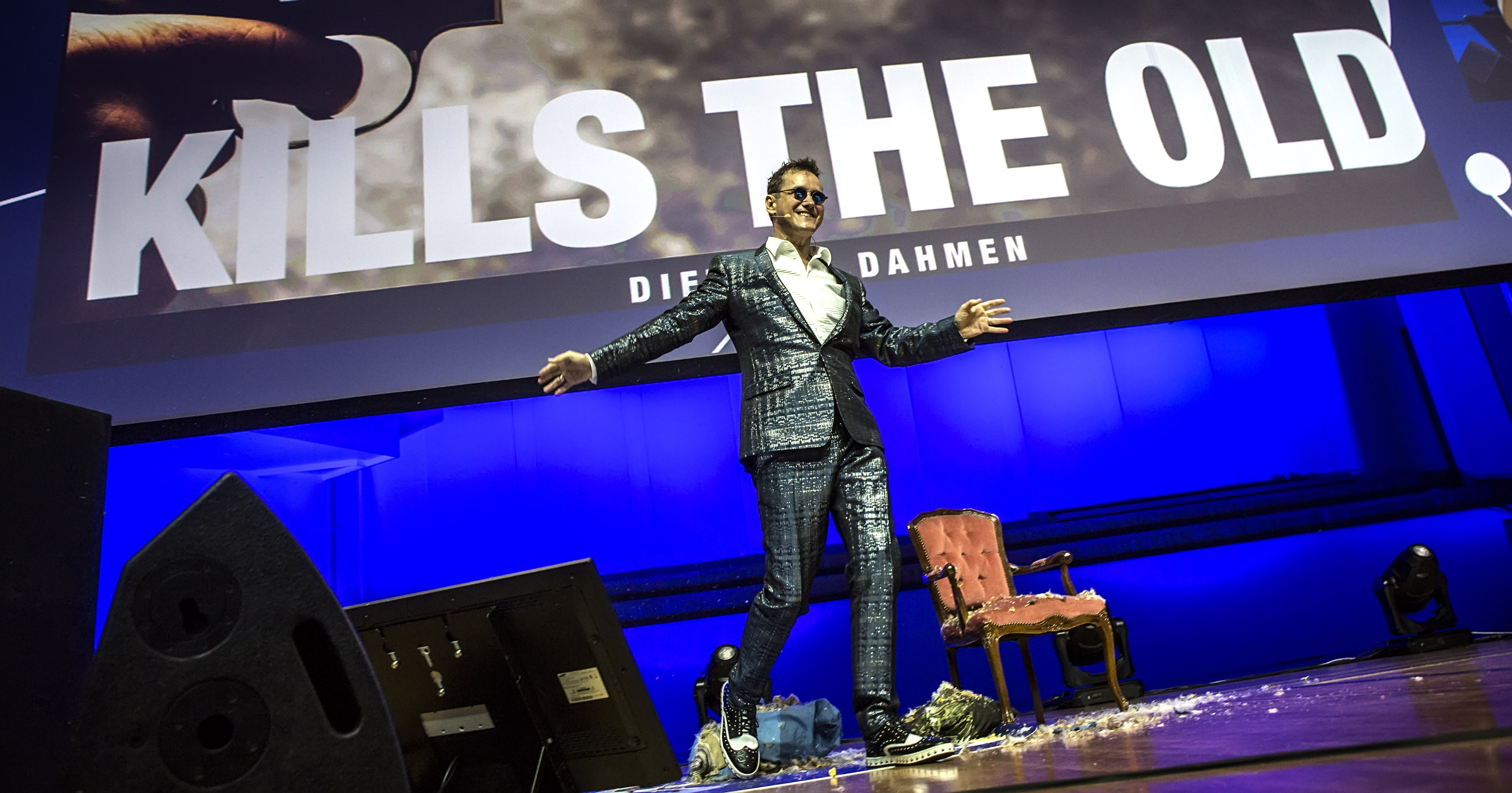 Unter dem Motto „Transformation. BAMM!“ beschreibt Dahmen die heutige Wirtschaft als „Vulkan-Ökonomie“. In der Vulkan-Ökonomie brodelt das technisch Machbare und wird von den Entscheidern lange unterschätzt. „Doch dann… BAMM! bricht der Vulkan aus“, so Dahmen. Die Folgen sind für viele Branchen vernichtend. Bei uns präsentiert Dietmar Dahmen die Konsequenzen der technischen Veränderungen für das Marketing. „Wer sich nicht bewegt, auf den scheissen die Tauben!“ – eine typische Aussage für den Bühnenprofi, der mit spektakulären Auftritten kein Blatt vor den Mund nimmt. Transformation lässt sich nicht aufhalten. Dietmar Dahmen nimmt das Publikum mit auf eine Weltreise der Tech-Innovationen und neuesten Trends, die die Welt prägen und verändern werden. Marketing BAMM! 2018 bietet kurzweilig und prägnant eine Entscheidungsbasis für Unternehmer, die den „Zug der Digitalisierung“ nicht verpassen wollen.