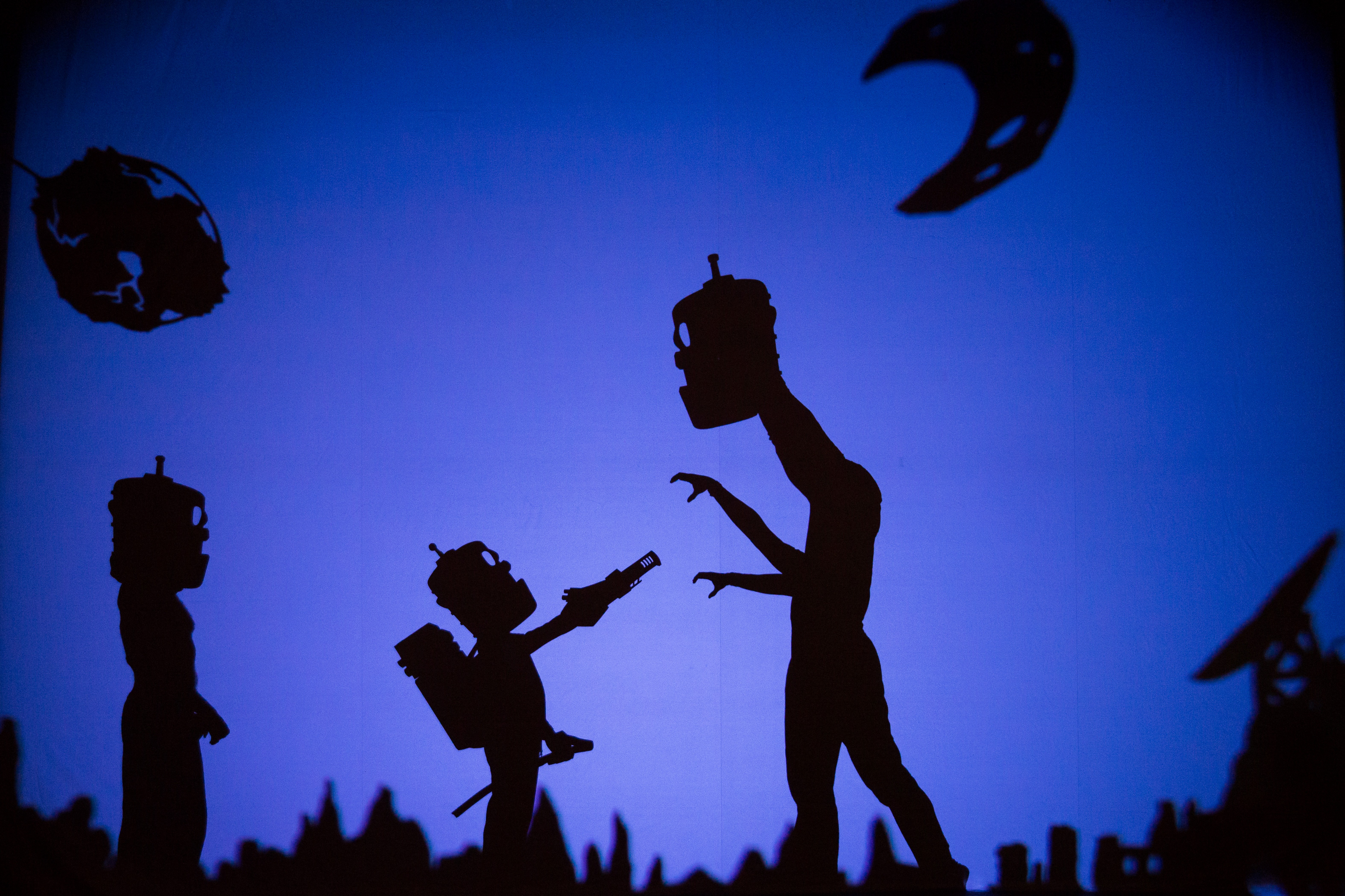 Diesmal taucht der Zuschauer ein in Dschungelwälder, Musikkneipen und Maschinenwelten, bevölkert von Autos, Straussenvögeln, Robotermenschen und Wolkenwesen. Szenen aus Zirkus, Rockkonzert, Akrobatik und Kino verschmelzen. Gegenüber der Ur-Version von „Shadowland“, die noch hauptsächlich zwischen einer Lichtquelle und einer grossen Leinwand stattfand, kommen hier multiple Screens gleichzeitig zum Einsatz, die Choreografien verweben sich mit den Schattenbildern, die „reale“ Welt vermischt sich mit der „Schattenwelt“.