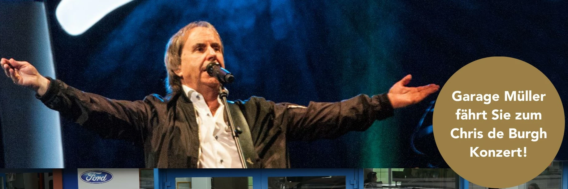 Samsung Hall fährt Ford – das können Sie auch. Dazu bietet unsere Fahrzeugpartnerin, die Ford Garage Wehntal, eine besondere Aktion: Gewinnen Sie 1x4 Tickets für das fast ausverkaufte Konzert von Chris de Burgh am 26. Oktober 2019 in der Samsung Hall und lassen Sie sich mit dem Ford VIP-Shuttle-Service bequem ans Konzert und wieder zurück chauffieren. Teilnahmeberechtigt sind alle im Kanton Zürich wohnhaften Personen, die älter als 18 Jahre sind.